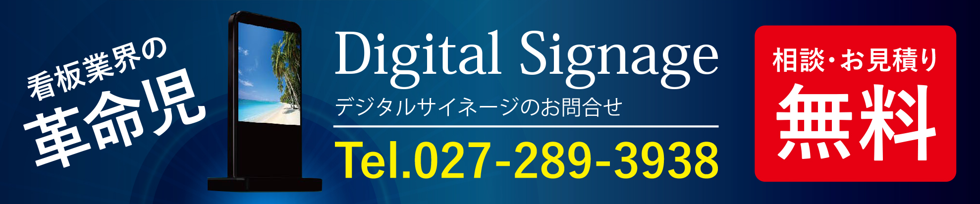 屋外・店頭・公共空間・交通機関など、あらゆる場所で、ディスプレイなどの電子的な表示機器を使って情報を発信するシステムを総称して 「デジタルサイネージ」と呼びます。店頭ディスプレイや催し物の案内など、さまざまな場面で集客促進に貢献いたします。