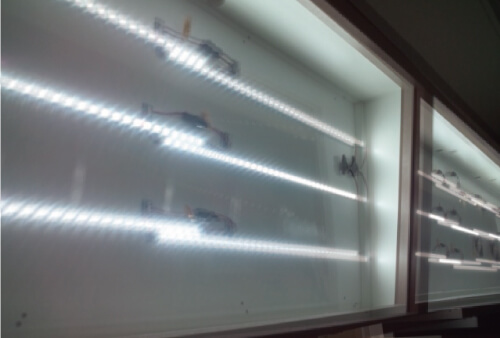 また、蛍光灯ではオンオフした瞬間の突入電流によりエミッタが消耗し、寿命が約1時間ずつ短くなってしまう特性がありますが、 LEDは点滅に強く、頻繁にオンオフしても寿命に影響はありません。