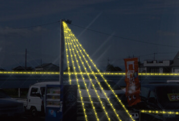 イルミネーションはクリスマスを始め、もさまざまなイベント事に彩りを加え、外看板から室内装飾まで美しく演出することのできるアイテムです。素敵なイルミネーション装飾・ライトアップは、それだけでも人々の話題になり、人目を集めます。