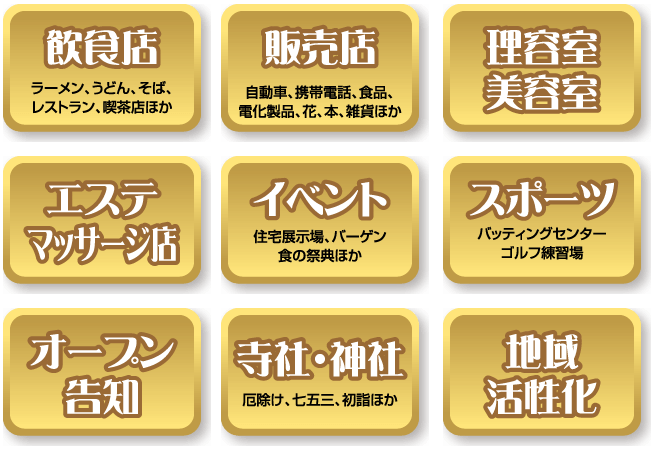 OPENやイベント時の広告、店のイメージや、料金の表示・駐車場への誘導など多様に使用出来ます。