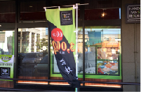 看板と違いのぼりは簡単に撤去できますし、新メニューやサービスデー、イベントなどに合わせて変えられるので、日々のお客様の注意を引くことができます。