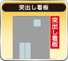 お店の横から突き出したような看板を突出し看板と呼びます。