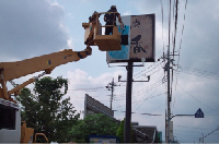 高所作業車を使用し、安全かつ迅速に作業するため工期を短縮することが可能です。