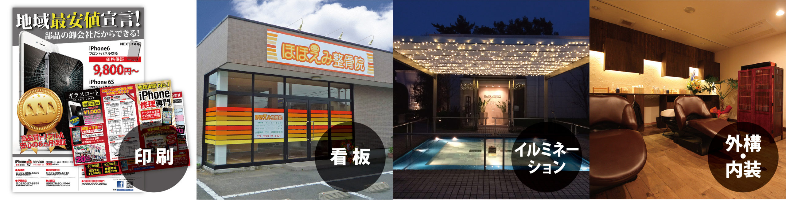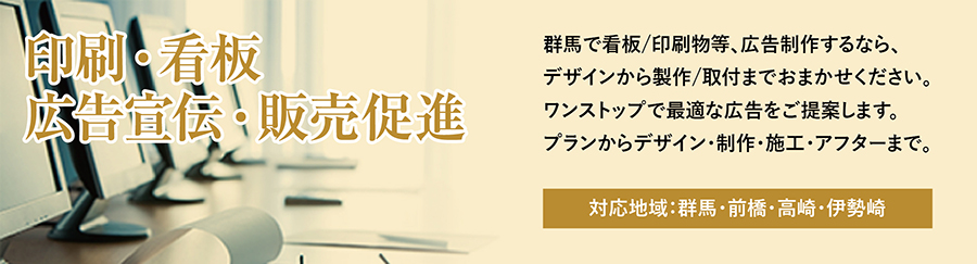 チラシ、リーフレット、パンフレット、または会社案内、名刺、伝票、封筒など印刷物を企画からデザイン・印刷までトータルでプロデュースいたします。 サインやホームページなどの広告や店舗デザイン、開店のお手伝い致します。 ・見積り無料 ・格安料金 ・当店でサンプルやモニターを見ながら打合せできす。 ・現地にお伺いして打合せいたします。 ・群馬県内現場調査に伺います 初めてチラシをつくる方、広告のこと、効果などお気軽に相談ください。