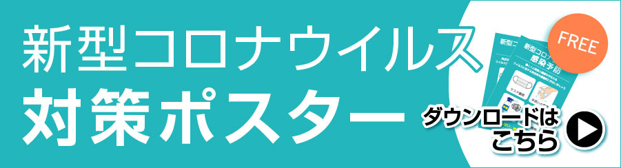 昨今の新型コロナウイルス感染症の流行に伴い、経済に与える影響が懸念される中、弊社といたしまして、なにか社会にお役に立てることはないかと検討してまいりました。 そして今回、新型コロナウイルス感染症対策を内外に周知するためのポスターを作成し、皆様に無料でご提供させていただく運びとなりました。 ぜひこちらのポスターをご掲示いただき、この苦難を乗り切る手段の一つとしてご活用いただければ幸いでございます。 この混乱が一日でも早く収束し、皆様が平穏に過ごせる日が来ることを祈念申し上げます。